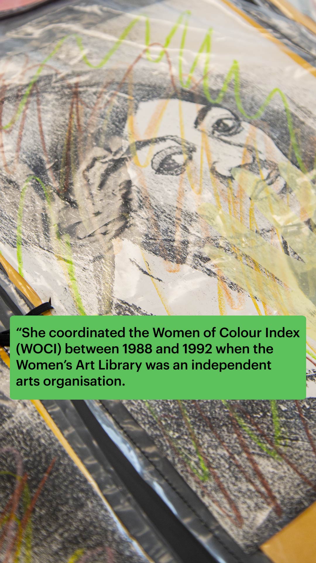 The artwork was included in the 2015 archival exhibition Show and Tell at the Women’s Art Library, curated by artist and archival research group X Marks The Spot as part of the launch of their publication Human Endeavour: a creative finding aid for the Women of Colour Index.