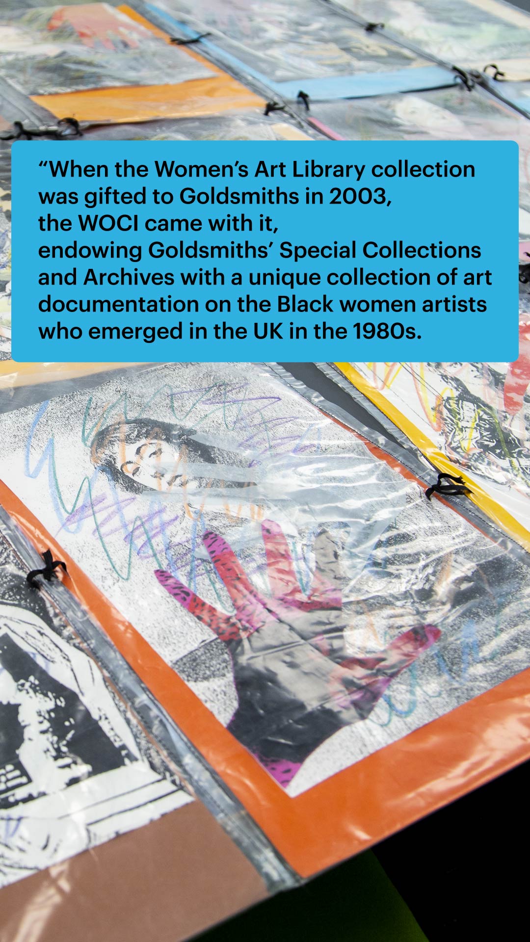 In April 2021, one of Rita Keegan’s artworks titled The Hands Series went of permanent display at Goldsmiths, University of London. Rita Keegan’s The Hand Series is the third artwork from the Women’s Art Library collection to be installed in a public area at Goldsmiths, University of London, other works include Rosy Martin and Jo Spence that have been installed in the Professor Stuart Hall Building. The artwork dates from the 1980s and is an excellent example of “CopyArt”, produced whilst part of the CopyArt Collective that Rita cofounded in 1984 as an open resource centre for artist and activists supporting social justice campaigns.